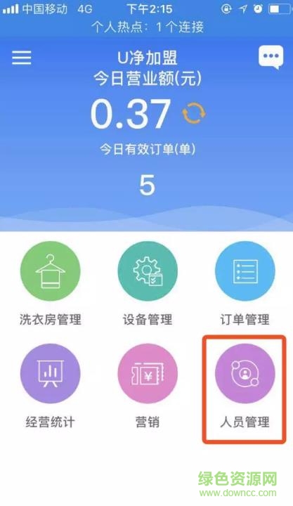 在正式开始之前,你需要加盟商app更新到v1.8版本以上,下载安装之后,在主页点击【人员管理】。