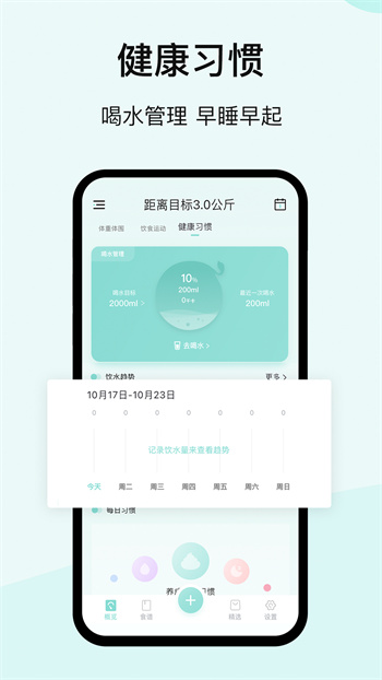 支持设定目标体重,自动计算BMI,看看你离目标有多近。
