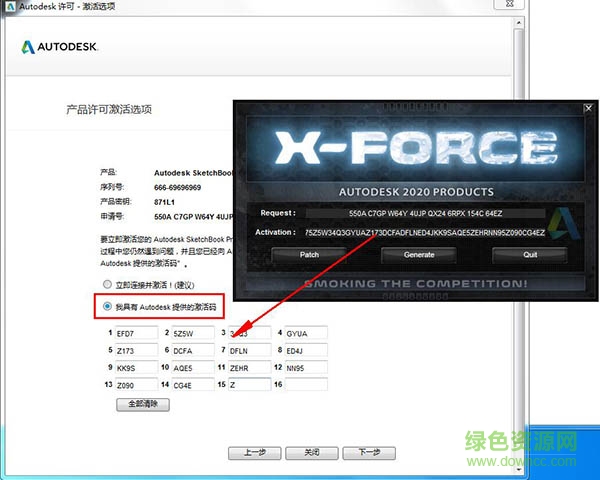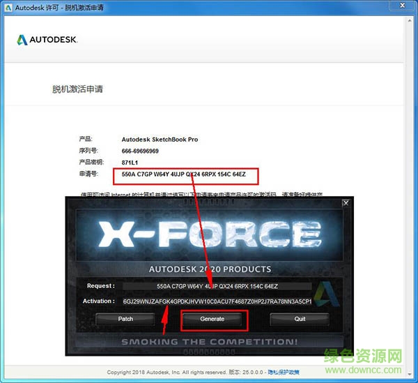 15.激活界面的申请号复制到注册机中,点击generate生成注册码。