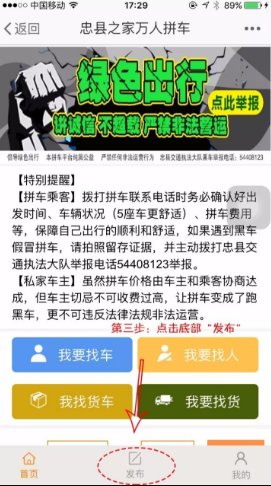与此同时,没有下载忠县之家APP依旧可以通过微信、网页、qq群等方式发布和查看忠县之家万人拼车平台上的信息,但无法体验最新功能!