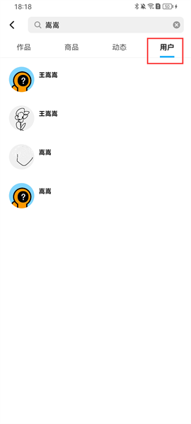 3、接着切换到用户栏,就会有多个不同的结果,选择自己的目标好友并点击;