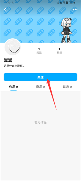 4、点击他的头像后就会来到此人的主页,他的作品动态等都是在这里查看,点击关注,就可以时刻了解关注好友啦。