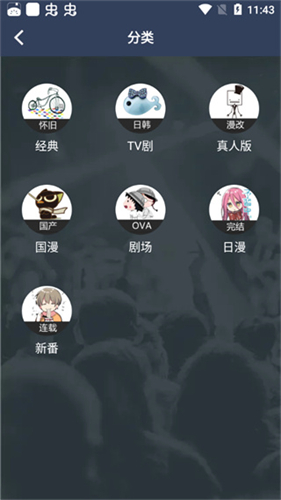 3、在我们的分区内,大家可以看到各种经典怀旧/日韩剧/漫改/国产动漫/连载新番等细致的分类资源,用户都可以直接在线观看。