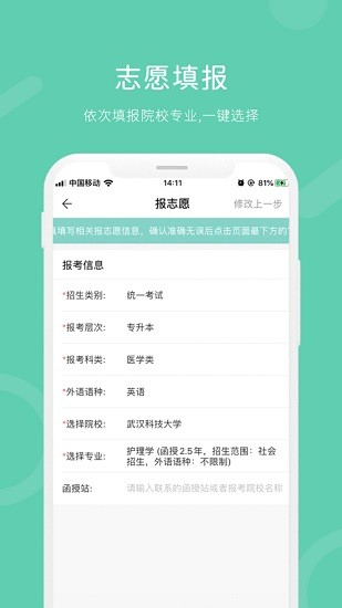 根据综合专业评价结果、评分、排名、分数预测模式,根据人工智能计算法实现智能志愿者的推荐,让考生进入最好的大学,学习最适合自己的专业。