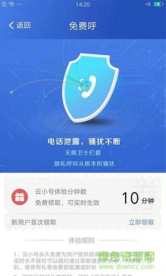 高安全性、防骚扰、保护隐私的通话工具APP。依靠电信级的底层架构及高强度的商用级加密对本机通话号码进行端到端的隐藏保护。认证身份后,用户无须新的SIM卡,即可在同一部手机上额外使用多个新号码,一卡多号。新号码与本机号码一样,可以正常接打电话、收发短信。结合云端服务,云小号专注于通信能力的隐私解决方案,先后为神州专车、滴滴打车、百度外卖、人人车等企业提供企业级服务,推出“云小号”产品是希望能把好的技术、产品、服务惠及消费大众,减轻我们每个人在营销、诈骗等骚扰电话方面的困扰!