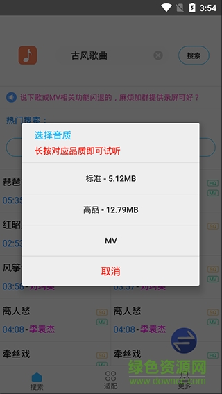 3、支持无损、标准以及高品和mv等,下载速度快