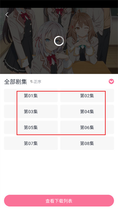 4、最后,点击最下方【查看下载列表】,这里可以看到目前动漫的下载进度。
