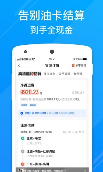 这里有暖心的担保权益,货主预付运费到平台,司机卸货马上结算;