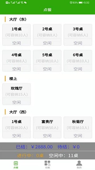 3、通过应用就能了解点餐桌的空闲情况,以便能高效的为客户服务。
