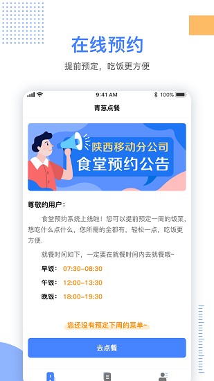 青葱点餐app是专门给用户提供线上点餐的平台,里面有非常多的美食种类,您可以根据自己的需求去制定点餐服务,饭菜的种类也是非常多,早中晚饭全都可以定,非常的方便,让您省时又省心。