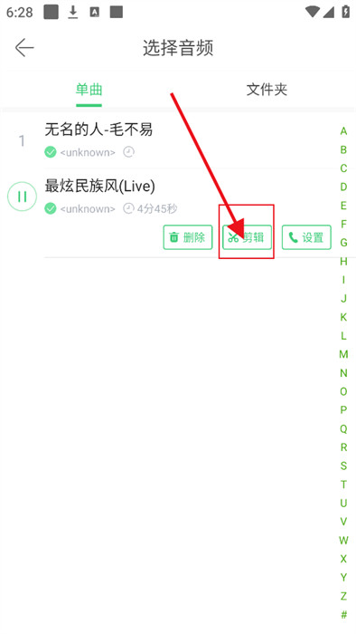 3、紧接着,找到设备中现有的铃声,并点击选择【剪辑】;