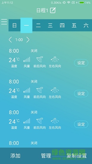 5、支持管理设定的日程,包括添加、复制设置、删除设置等,设备自动按照设置的日程进行运行;