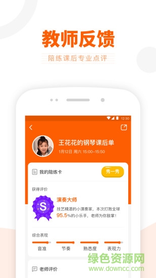 课后陪练单跟进:孩子练琴效果一目了然,保证练琴质量,记录成长。