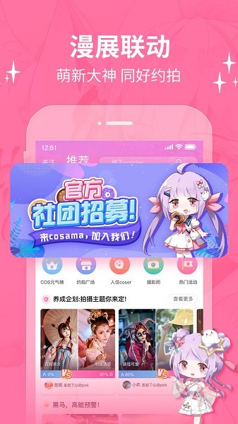提供一个以cosplay为主,通过图文、录音等形式发帖的二次元兴趣爱好交流天地(颜值、声控、兴趣社交);此外,用户还可自创专属兴趣圈子,呼朋引伴组织自己的“朋友圈”,是每个二次元爱好者的必备神器。在cosama app里,你除了可以发布帖子外,还能找到专属的兴趣爱好圈子,在线找到更多趣味相投的伙伴朋友。