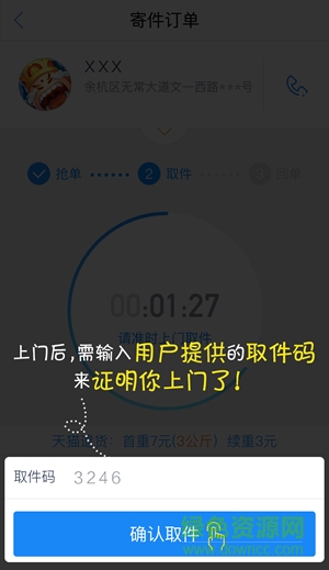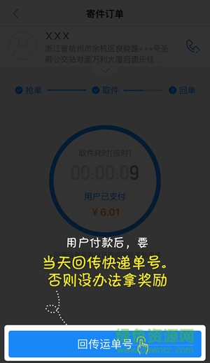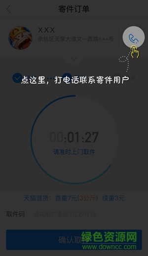 (4) 这时,运单号上的用户电话会收到“0571-28167392”的电话呼叫,用户点击接听后,你就可以跟用户进行通话了。