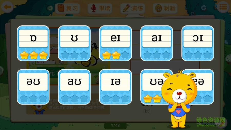巴比智慧园国际音标是一款非常好用的国际音标app,以图文并茂的形式教孩子学音标,支持进行跟读、复习、演练、对比和测验,让孩子从小打好英语基础,欢迎有需要的朋友到绿色资源网下载使用!