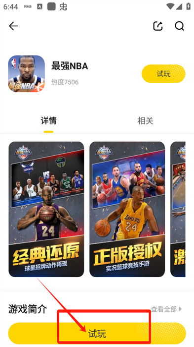 4、最后进入到详情页中,这里有着图文和视频介绍,直接点击下方【试玩】按钮,可以快速体验游戏的内容,十分的便利。