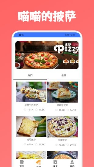 喵喵披萨菜谱为用户带来丰富的食谱可以进行学习,许多的菜品种类都在软件之中拥有收录,许多的披萨、可口的甜品,还有各大菜系都可以在软件之中找到,让用户轻松成为大厨。