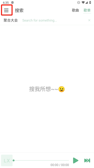 1、下载安装软件进入页面后可以直接在左上角的【三】这里,可以进行搜索或者找寻歌单等;
