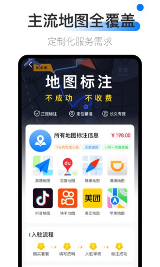 地图标注中心手机版为广大商户所提供的一个可以为店铺添加地图标记的出行工具,支持高德、百度、腾讯等常见的地图软件,让你在一个app内就能轻松完成标识添加的操作,通过添加标注的方式,来让更多人看到你的商铺。