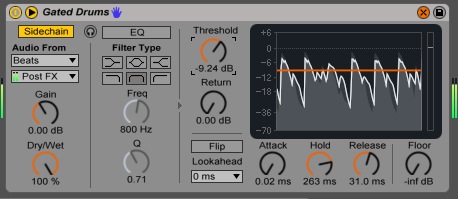 然后Gate门限也增加了实时流动的频谱,这样你就可以随着音乐的播放很直观的看到到底哪些波形被切掉了,如图17。