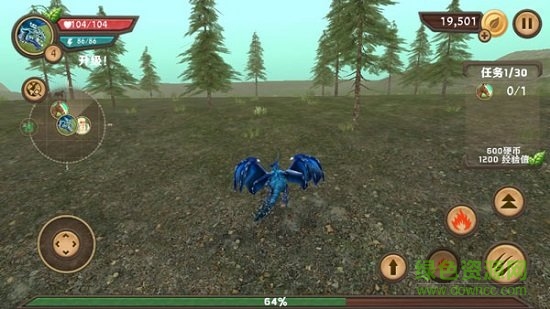 游戏中我们要控制一头龙在天空中飞行以及捕猎,想起来就让人觉得不可思议,不过操作的过程倒也并不困难,玩家们按住屏幕左下角的摇杆即可控制飞龙移动方向,右下角则有普通攻击、技能攻击等按钮,玩家们通过这些按钮控制飞龙的捕猎过程。游戏操作起来不算难,不过也要玩家们很好的控制能力才行,毕竟要同时控制上下飞行以及前后左右的转向,另外攻击目标的时候还要注意人类魔法师的攻击,所以想要流畅的控制起来,还是需要多多练习才行。
