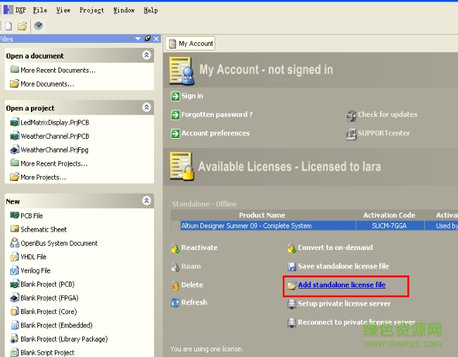 14.启动DXP,运行菜单DXP->My Account,点击Add Standalone License file,加载前面生成的license文件,修改到此完成。