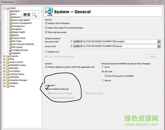 1.打开ad9,点击右上角dxp,择Preferences2、点击“system”》“general”》勾选“use localized resources”