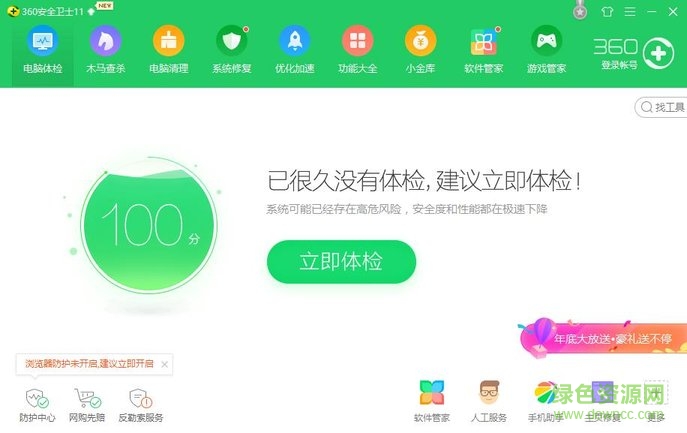360安全卫士一直以来主打在线安装模式,只需联网即可轻松安装最新版本,安装过程非常的简单快速,基本上都是全自动完成的,无需人工干预,非常傻瓜智能。360安全卫士启动后将立即自动执行电脑体检任务。在首页界面的右侧提供有账号登陆链接及推荐功能项目,用户还可以在此查看到程序当前的实时防护状态。除了默认的粉色皮肤,为了满足不同用户多样化的审美需求,360安全卫士8.7还内置多款不同风格的皮肤可供用户自由选择换用,用户只需点击界面顶部的小衣服按钮即可启动换肤模块。