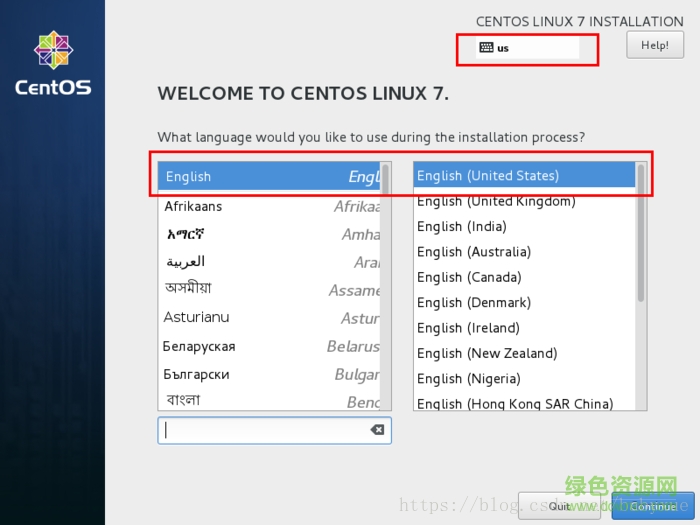 14.选择安装过程中使用的语言,这里选择英文、键盘选择美式键盘。点击continue。(也可下滑选择简体中文)