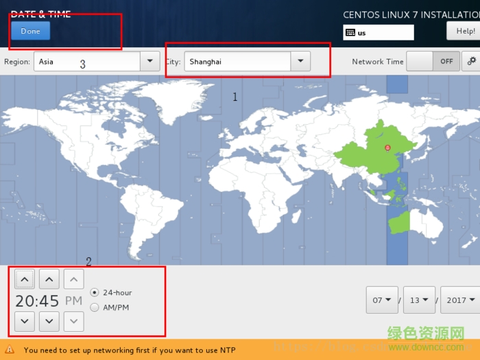 时区选择上海,查看时间是否正确。然后点击done