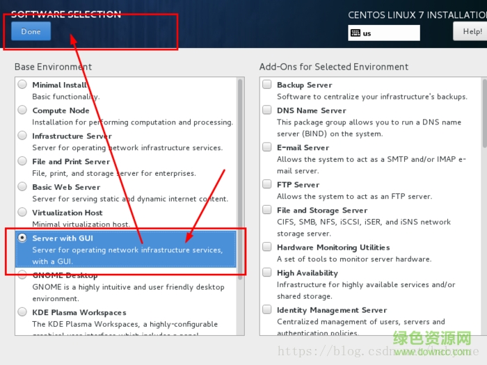 17.选择 server with gui,然后点击done
