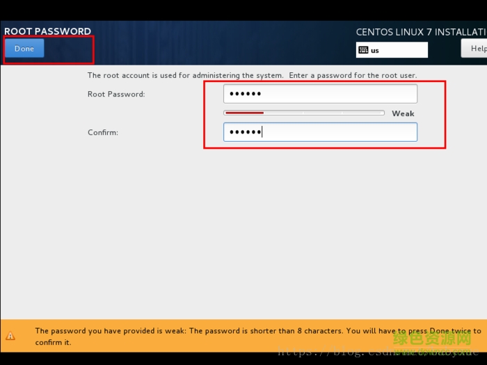 设置root密码后点击done