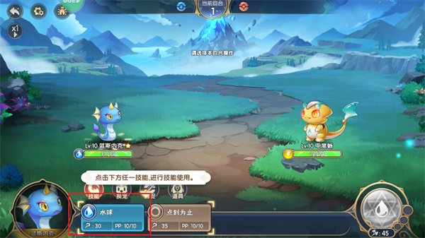 1、进入到战斗的场景之中后,玩家需要及时的进行技能的施展,可以选择一个你认为合适的战斗技能来进行展示,点击对应技能牌即可;