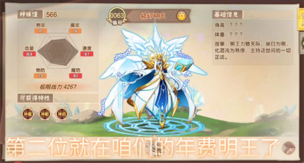 2、第二位是年费明王,数据值相当的强悍,可以实现一对六的情况,值得选择;