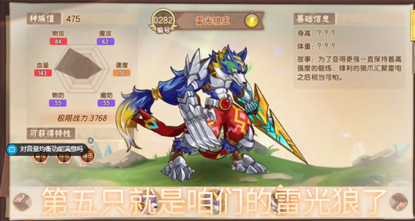 5、第五位是雷光狼,拥有超高的伤害值,且自带控制属性,可以通过肝活来获得;