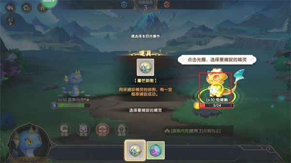 3、选择完毕之后,用户将需要点击对应的精灵,以实现精灵的捕捉;