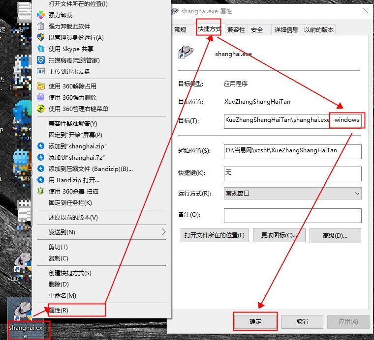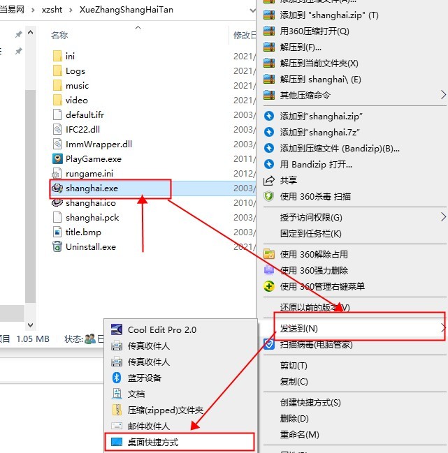 1.首先在桌面上创建shanghai.exe快捷方式。