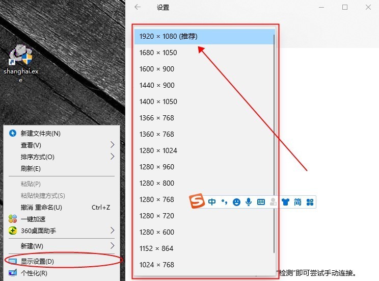 这个时候鼠标右键点击桌面,然后选择显示设置,把分辨率设置为自己经常使用的分辨率即可。