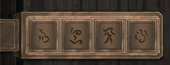 解开棋盘之后得到无面铜人,我们前往后山查看石碑,得知死的人最多的是丁和卯,天干癸4,辛3,丁5,戊1,乙2,回到最开始祠堂,如图调整排位,之后可以得到拨浪鼓。