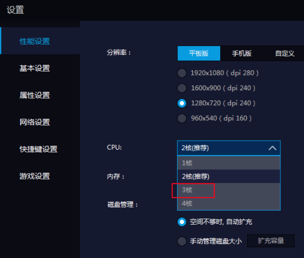 2.在打开的雷电模拟器设置窗口中,将分辨率调整为1280x720p。