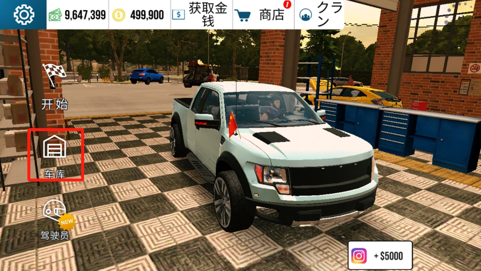 1、下载安装好该游戏后,可以看到有很多的选项,但是我们直接进入【车库】这里;