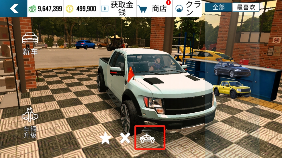 2、进入车库后可以看到中间下方有三个图标,我们只要选择最右边的图标就能改成警车;