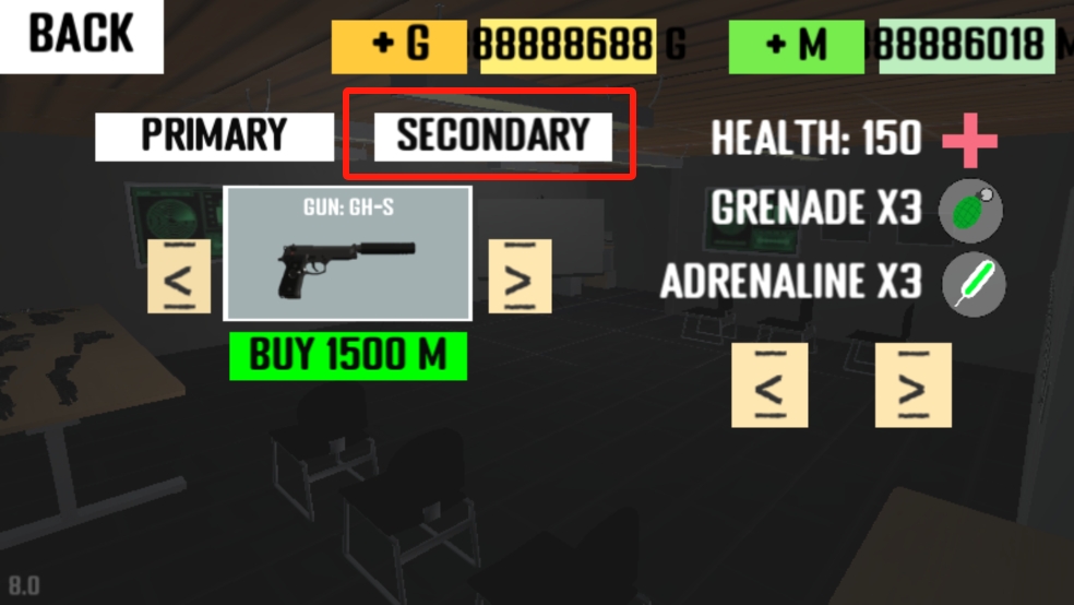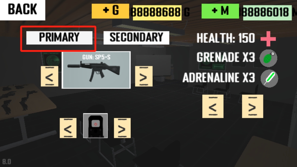 3、这个是手枪界面是副武器,在战斗上也许没有这里厉害但是不能没有,所以选择合适自己的作战工具吧;