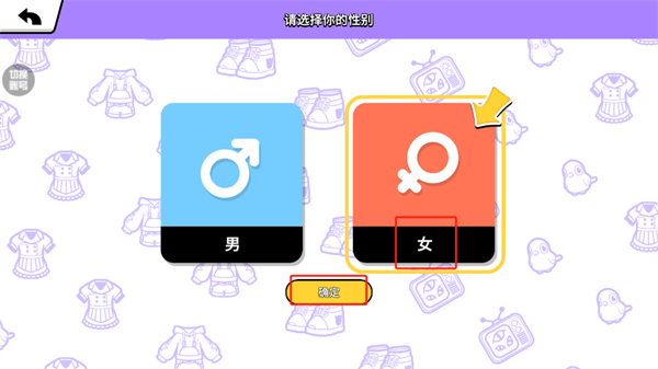 2、进入游戏之中后,玩家们将需要进行性别的选择,选择好性别之后,需要点击“确认”按钮;