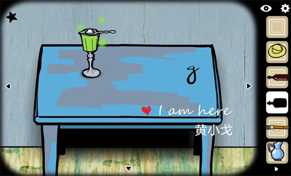 5、我最爱的饮料:(有向日葵的场景)把【苦艾酒匙】和【方糖】放到桌子上的杯子中,倒入【苦艾酒瓶】;