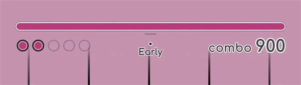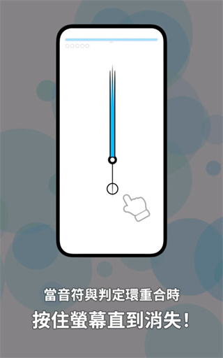 游玩区由引导线与判定元素构成,玩家需要跟随音乐节奏,在判定元素与引导线末端圆圈(不总会出现)重合时完成相应操作。