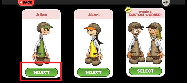 2、紧接着就需要选择我们的店员,点击店员下方的【select】就可以进入到到游戏环节;