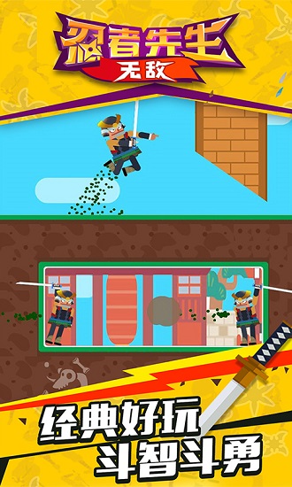 忍者先生无敌是一款休闲益智类型的热血格斗独立手机游戏,游戏采用独特的方块元素作为游戏背景,以经典的多人格斗冒险作为游戏的主要玩法。在游戏中,玩家的主要任务就是去挑战各种不同的高手,玩法十分刺激!前往新的土地,拯救人质,并使用独特的武器,如榴弹发射器,以对抗你的敌人,立即开始您的冒险!