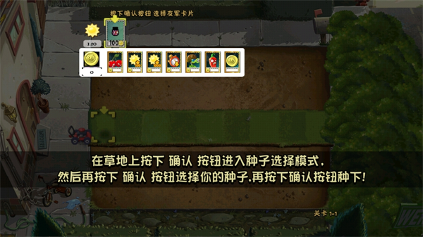 1、进入游戏后将会看到有多种植物可以种植,我们现在没有多余的阳光就算第一个种植吧;
